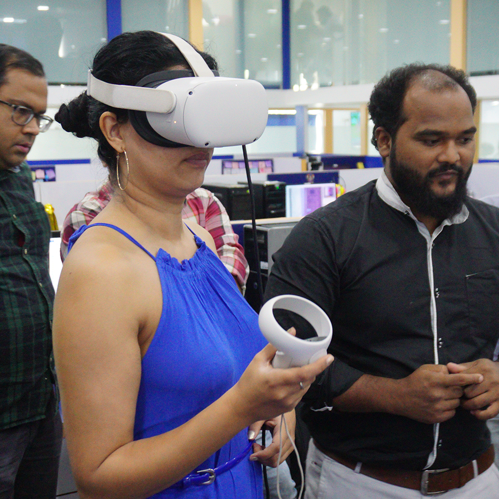 Our Vision: Our vision is to pioneer the integration of immersive technologies into everyday life, creating a future where the physical and digital worlds coexist effortlessly. We aspire to be at the forefront of AR, VR, AI, spatial computing, and virtual production, continuously pushing the boundaries of what is possible and unlocking new opportunities for businesses and individuals alike.